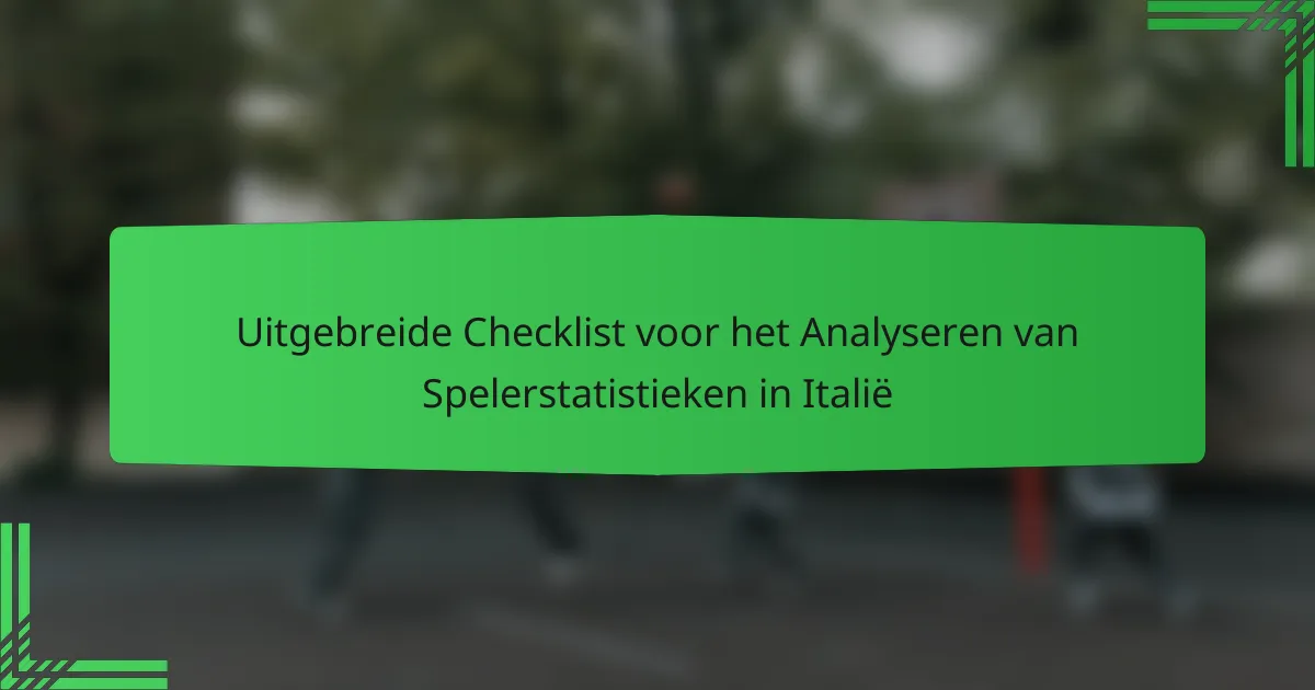 Het analyseren van spelersstatistieken in Italië vereist een grondig begrip van belangrijke statistieken zoals gescoorde doelpunten, assists en defensieve bijdragen. Door gebruik te maken van betrouwbare bronnen en gespecialiseerde software kunnen analisten waardevolle inzichten verkrijgen in de prestaties en fitheid van spelers. Deze uitgebreide checklist dient als gids om spelers effectief te evalueren en hun impact op het spel te beoordelen.
